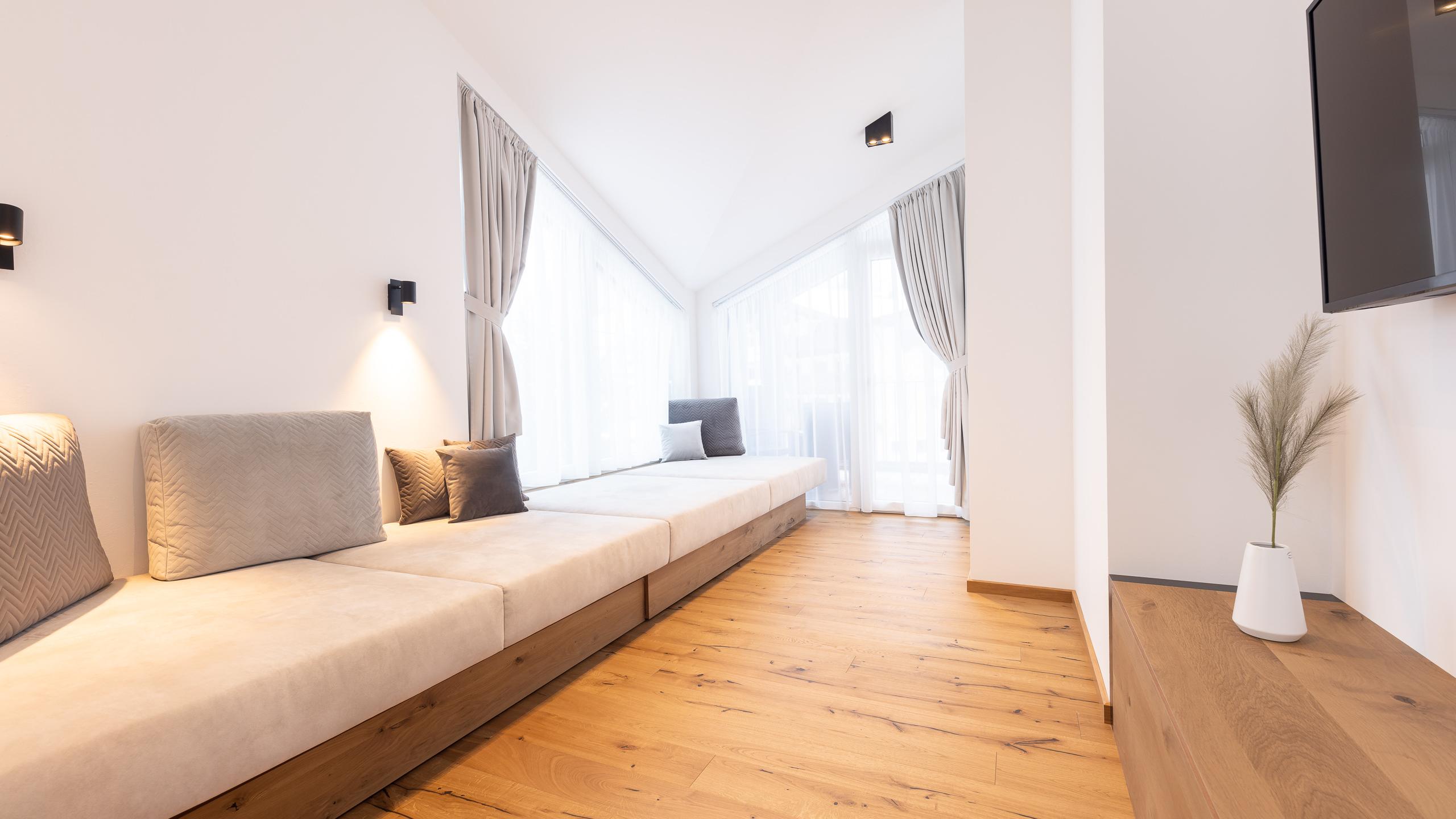 - Cosy & big lying surface in the living area for one further person to sleep in comfort